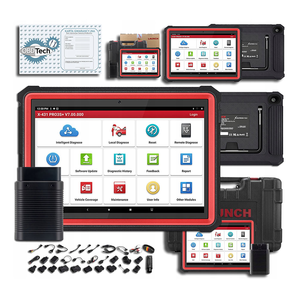 LAUNCH X-431 PRO3S Plus wersja 2023 – 10.1 to w pełni funkcjonalne narzędzie diagnostyczne do odczytu i usuwania kodów usterek dla całego systemu, kodowanie ECU, dopasowania, aktywny Test, funkcje prowadzone, 31 funkcji serwisowych, współpracuje z modułem Heavy Duty X431 HDIII dzięki czemu może testować ciężarówki 24 V (w tym benzyna i olej napędowy), RAM 3 GB + ROM 32 GB (można rozszerzyć do 128 GB), 2 lata bezpłatnej aktualizacji w cenie.